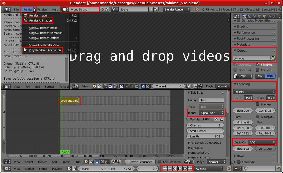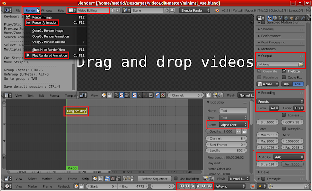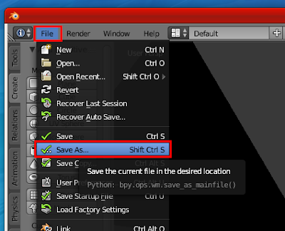 con los accesos de menú Fie - Render - Window - Help (Archivo - Procesar - Ventana - Ayuda).